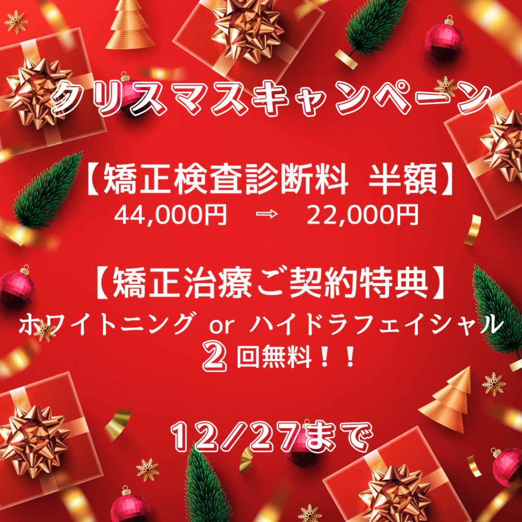 キャンペーンは年内最終診療日の12/27(水)までとなりますが、特に土日のご予約は空きが少なくなって参りましたので、ご希望の皆さまはお早めにご予約くださいますようお願い致します🤲
